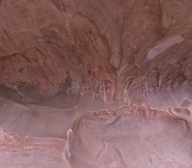 On the 8th of July we went for a walk to see the Aboriginal rock art in the Flinders Ranges. It was steep to climb and it was also rocky. The Aboriginal rock art is made by colourful rocks scratched on a bigger rock.
