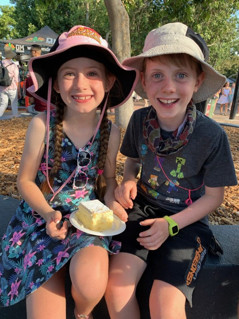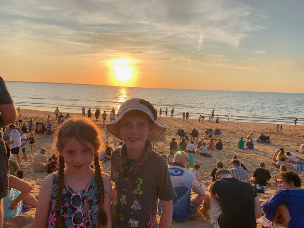 When we got to Darwin we went to a market called Mindil market. It was super busy. We looked at the stalls for a hour and then Mum and Dad decided that we would have dinner there. Isaac and me had chips and calermarrey rings. They were good and the chips were salty.