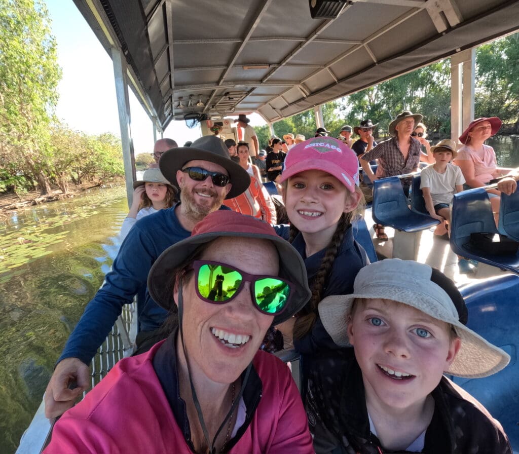 On Wednesday night we went to the Yellow Water Cruise in Cooinda. I was really excited to go on the cruise. We got to see lots of crocodiles, some kingfishers, buffalos, sea eagles, whistling kites and whistling ducks. The cruise was nice because we got to see lots of crocodiles and it was at sunset. After the cruise we went to the resort and had pizza for dinner. Mum and I had a pineapple pizza but we gave all the pineapple to Isaac and dad.