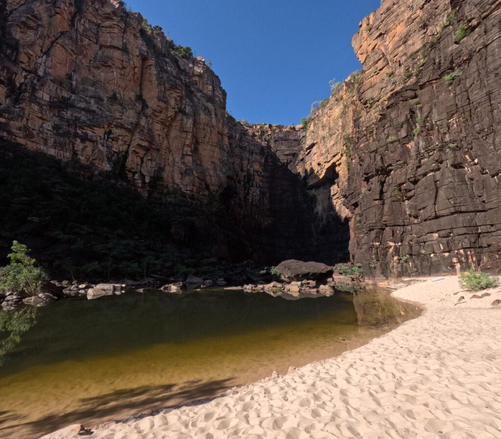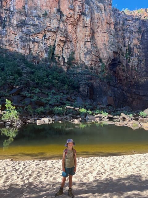We did some more 4wding and then we got to Jim Jim falls. It was a shorter walk than Twin Falls but we were all really tired. Jim Jim Falls weren’t running because it’s the dry season. It was dark water so it felt a bit unsafe. It wasn’t as pretty as Maguk.