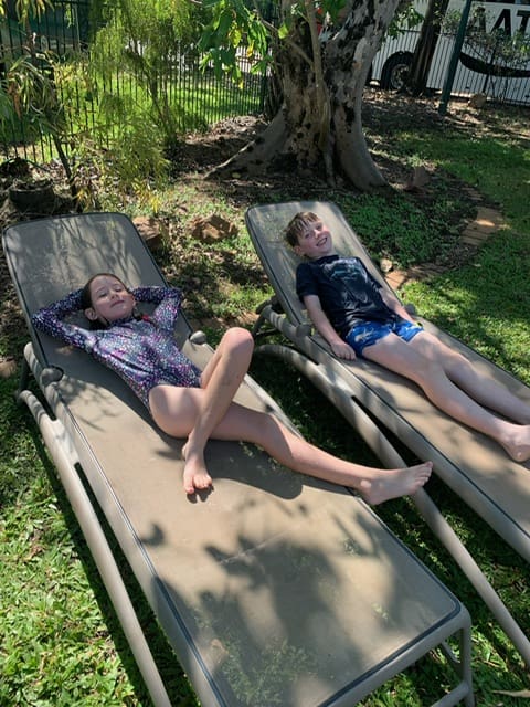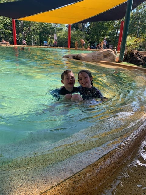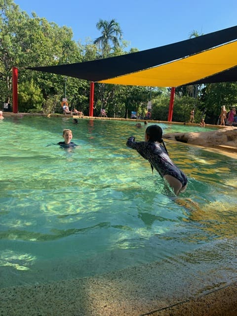 We went on a walk that was super boring because it was flat. It said it was a monsoon forest like the other walk but it wasn’t as good. When we stopped for lunch mum thought she saw a scorpion. After the walk we went to the swimming pool at Cooinda. It was nice because we hadn’t been in a pool for awhile. I scrapped my little toe on the bottom of the pool. Isaac and I played swim schools.
