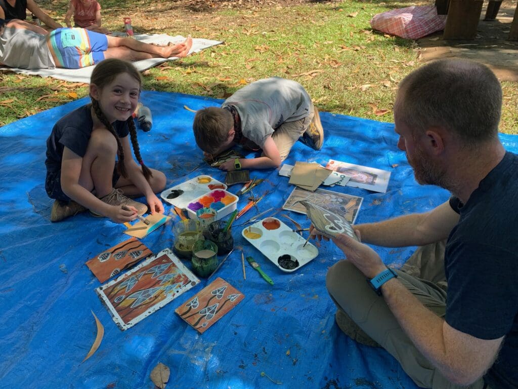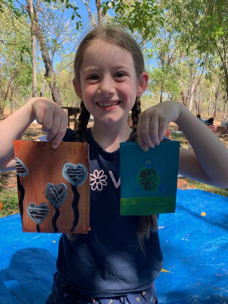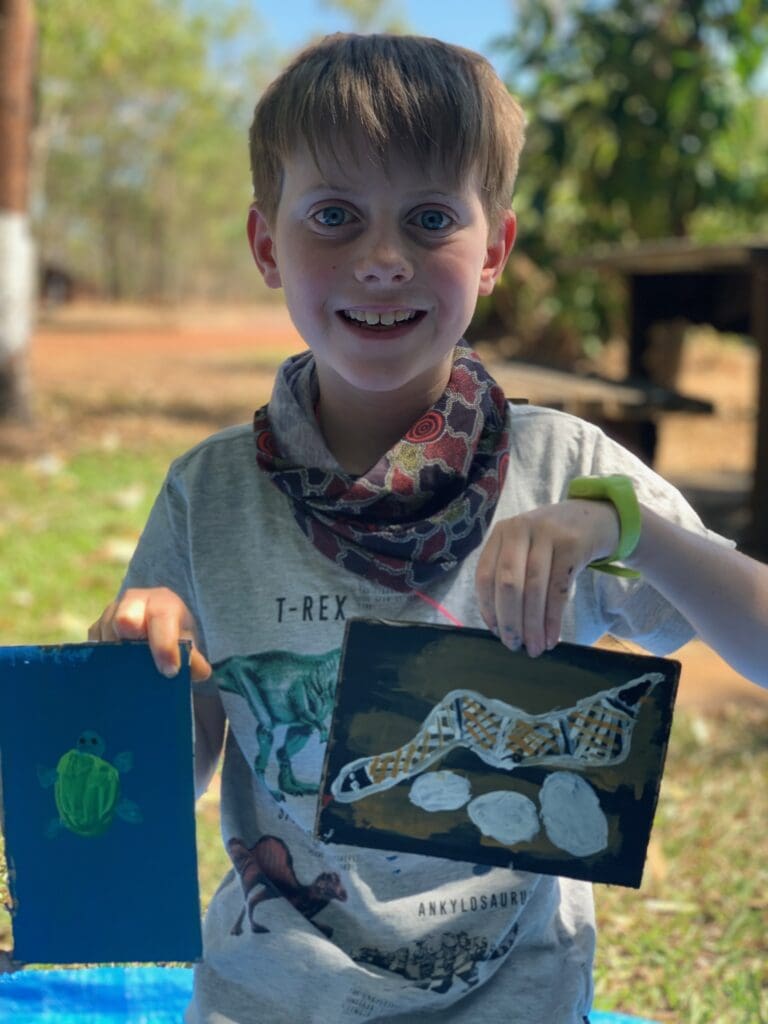The next day we were me and mum were signed up for a weaving workshop. Isaac and dad weren’t allowed to do it because they are boys. We waited and waited for about an hour but they didn’t show up. The ranger came back and said sorry guys the weaving has been cancelled because lots of the people in the community are sick. I felt really sad when it was cancelled. Then I thought maybe the painting session we are booked in for won’t happen either.
