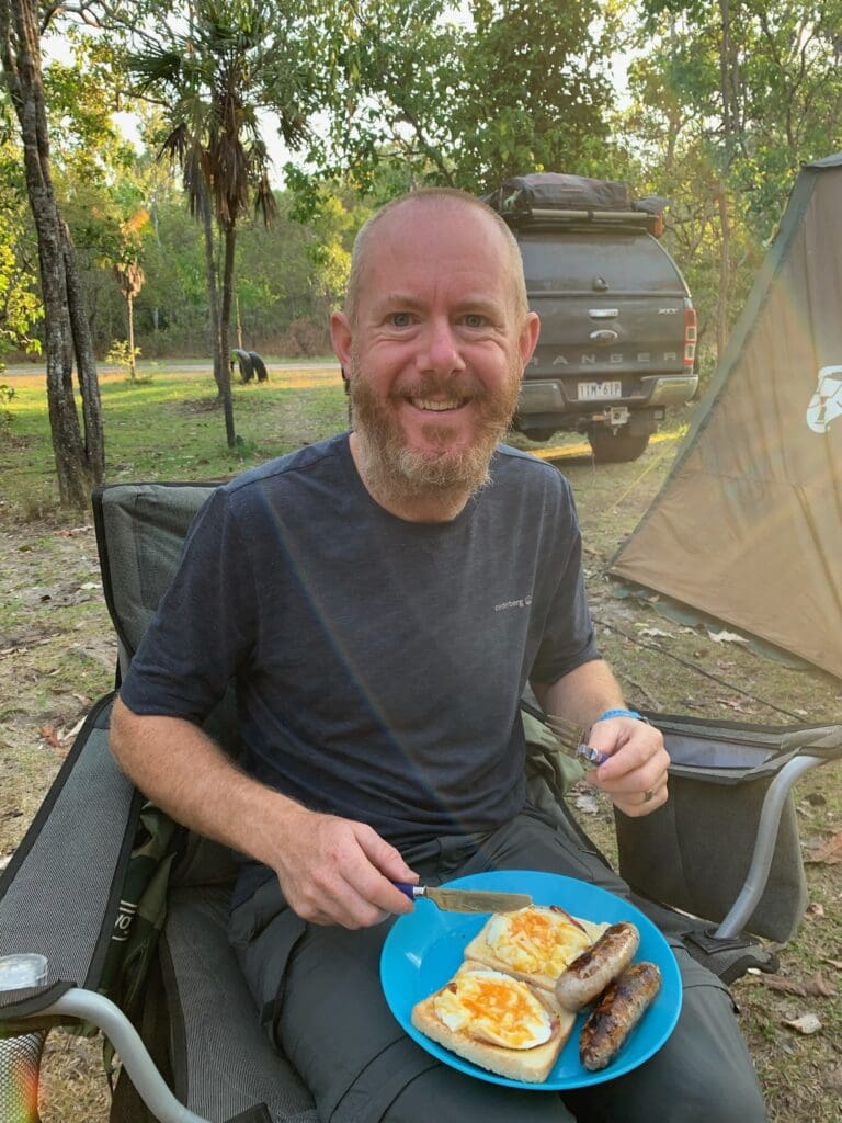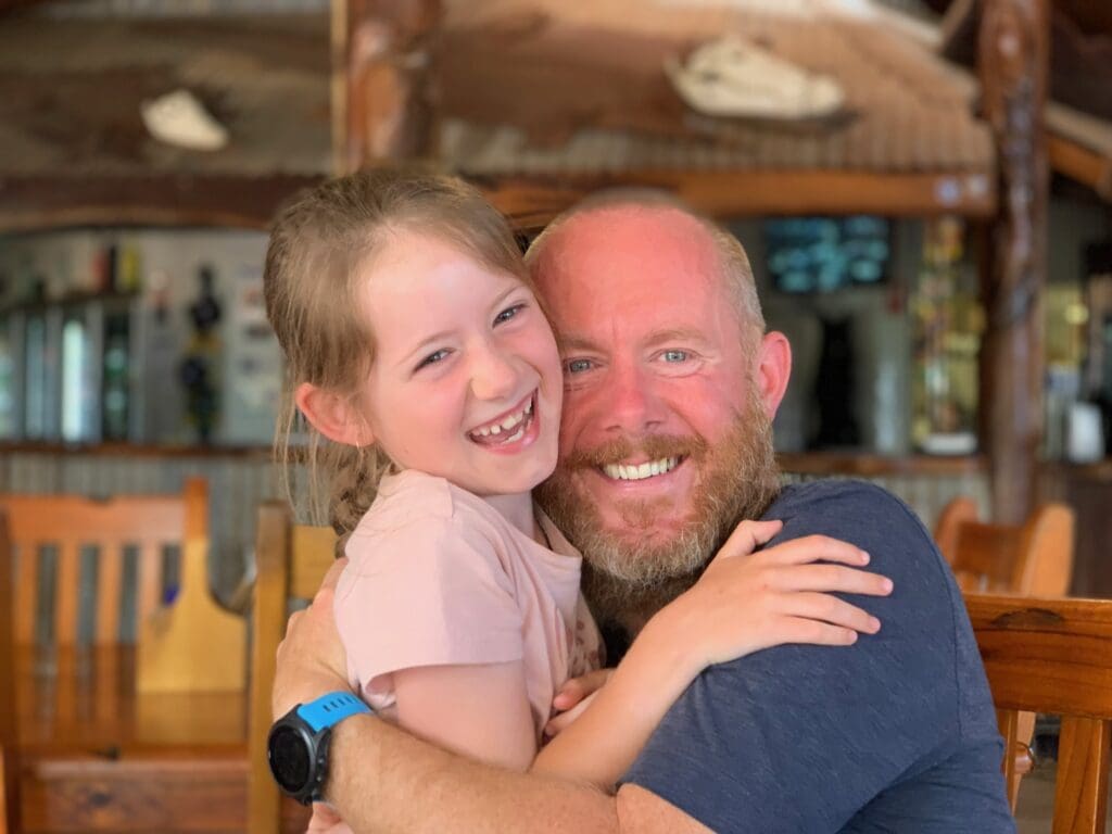 Dad’s birthday started with hugs, kisses and presents. Dad got a home made card and heaps of chocolates. He had a big breakfast with eggs, bacon and breakfast-sausage on toast.