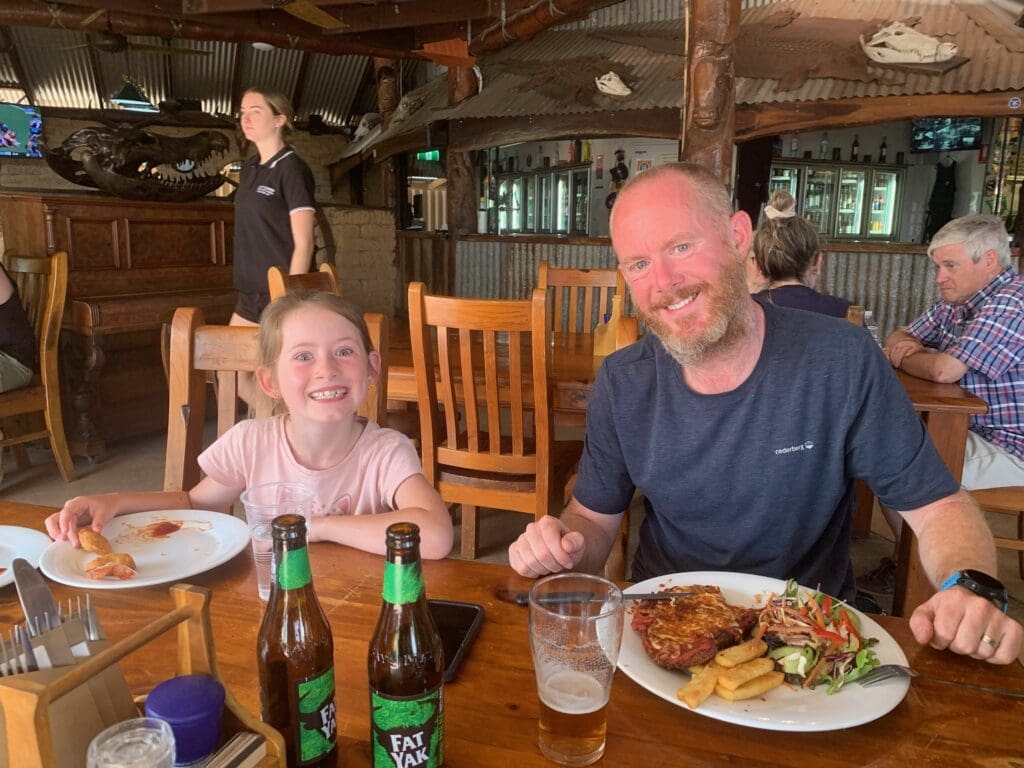 We went for lunch at a place called Lazy Lizard in Pine Creek. The pubs food was filling especially mummy’s pizza. Isaac and I had chicken nuggets and chips with sauce. Daddy had a parma with chips and salad.