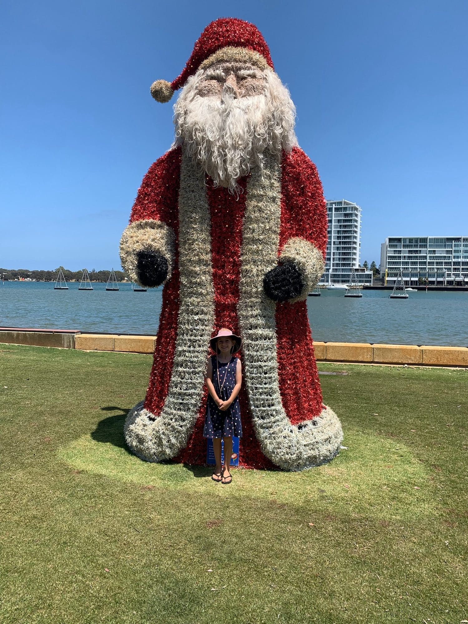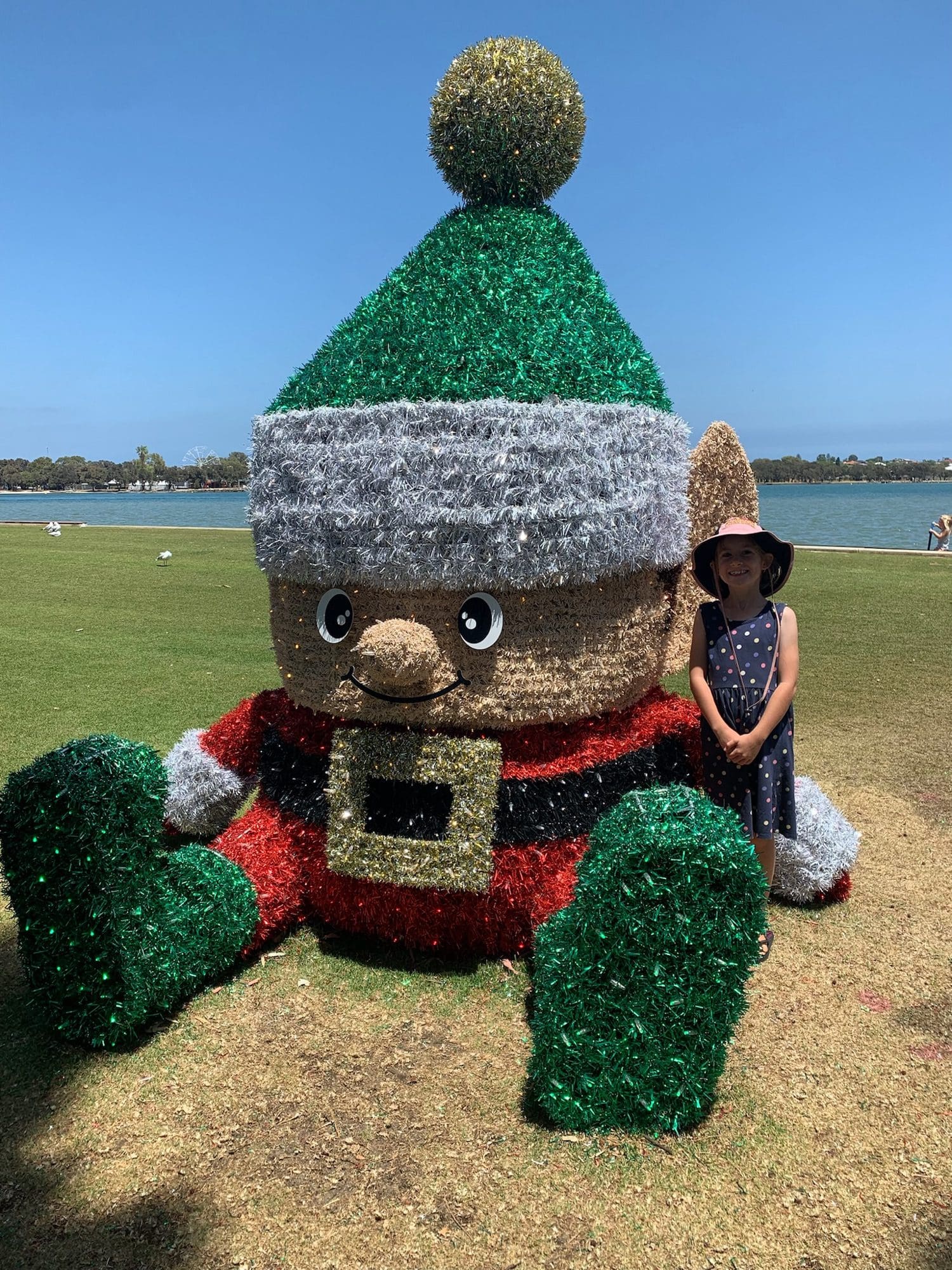 We left Fremantle and headed to Mandurah to see the giants. Mandurah is famous for their giants. Before we started hunting for giants we saw some christmas lights. My favourite was the elf. He was so cute.
