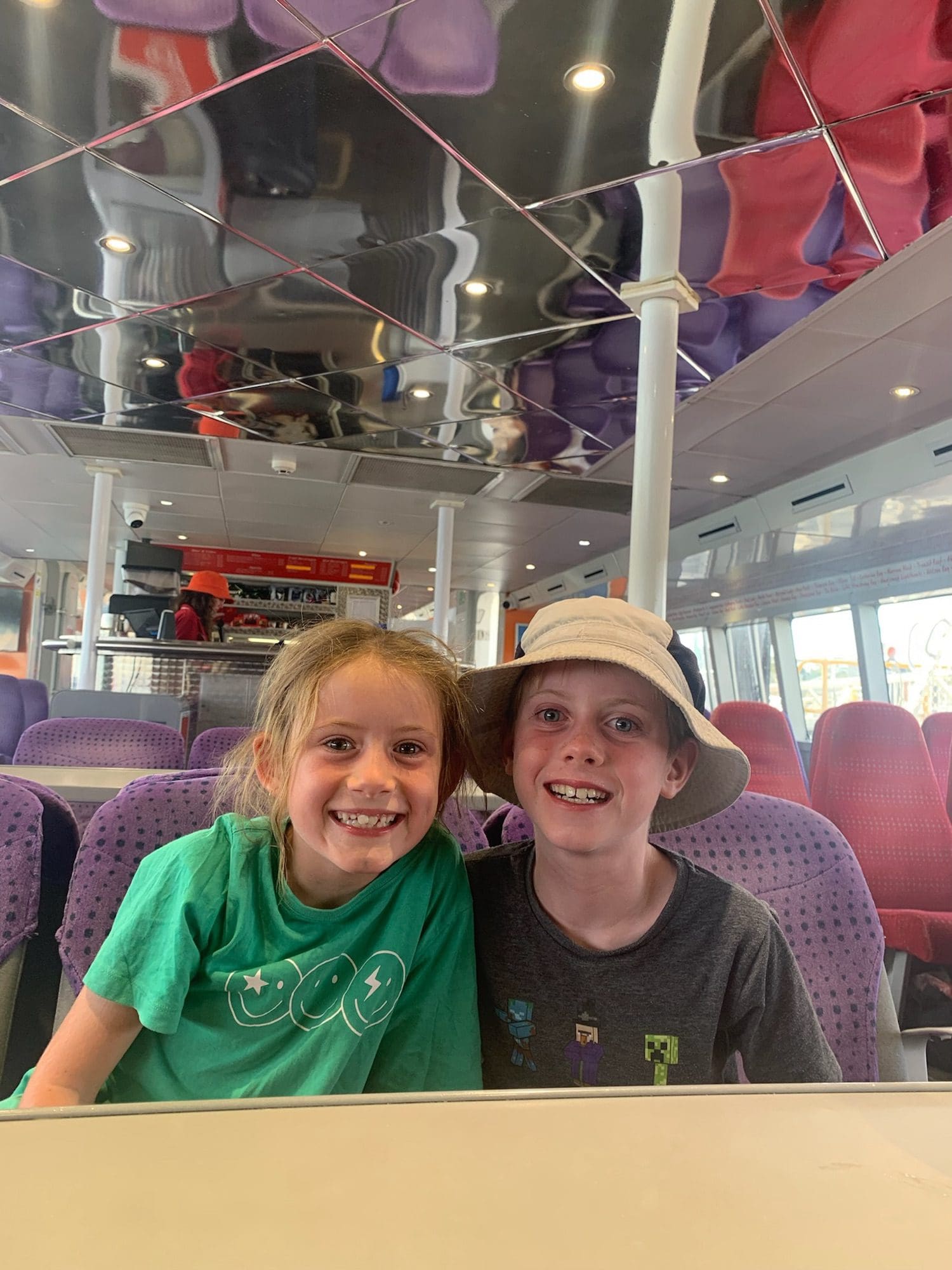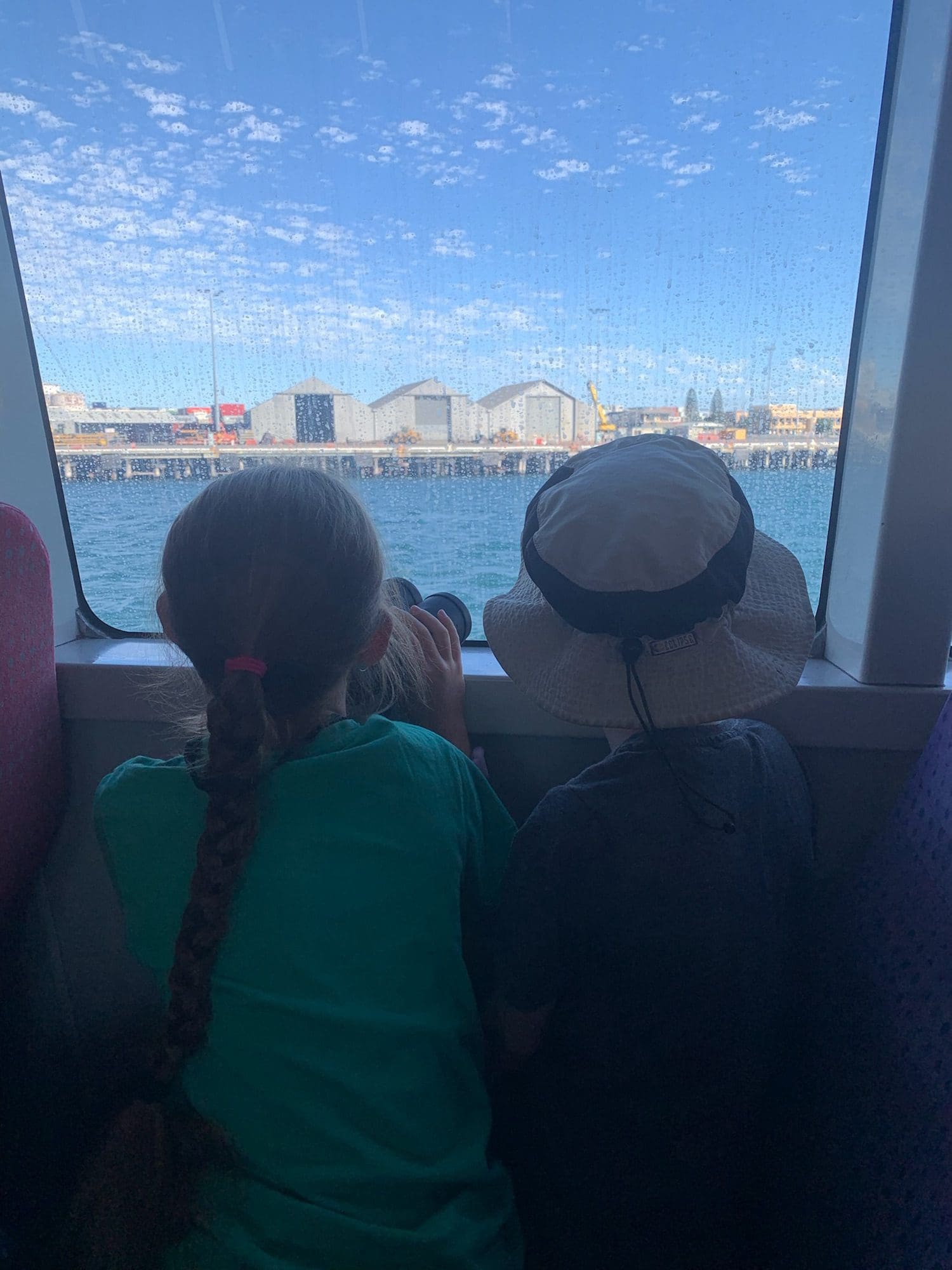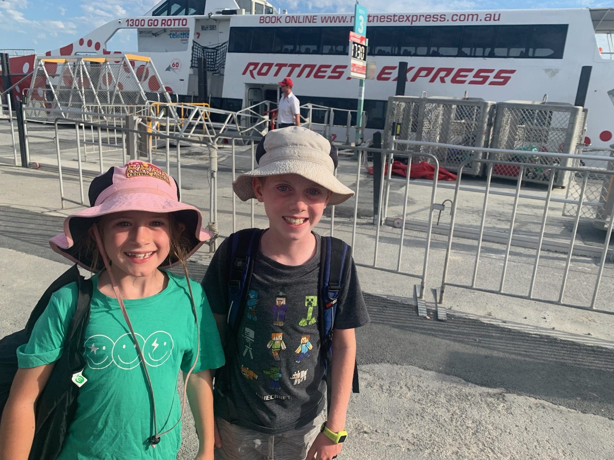 On Thursday we got up early to get to the ferry to go to Rottnest Island for the day. When we got on the ferry I chose the purple row of seats. When Isaac and I looked out the window we saw big big container ships carrying lots of containers. Isaac said they were the biggest boats he’s ever seen. When we arrived at Rottnest Island we saw lots of people riding bikes. I wouldn’t like to ride a bike because it was too busy and too hot. We jumped on the bus that took us to all the snorkelling places. First we stopped at Parker Point. We went for a little snorkel but didn’t see much so went to catch the bus. When we were waiting a man told us there was a snorkelling trail so we went back. It was so cold I felt like my eyes were going to pop out. We saw some fish and seagrass and a big rope. Once we got to the bouy we turned around and came back to the warm shore. Next stop was Little Salmon Bay. I sat on the beach and watched mum, dad and Isaac go snorkelling. I sat on the beach because I was still freezing cold after the last snorkel. We jumped back on the bus for a drive around the island which felt like forever. We went to Little Armstrong Bay and I did some snorkel diving with dad and Isaac. When we were there we saw big schools of salmon. We walked to Little Parakeet Bay and did some more snorkelling with dad. We caught the bus back to the village and saw some quokkas. We tried taking some selfies with the quokkas. They were really cute and cheeky. Then we went to have a cold drink and whilst we were at the tables a quokka came along and tried to take food from our esky bag. We caught the ferry back and I was so tired I nearly fell asleep.
