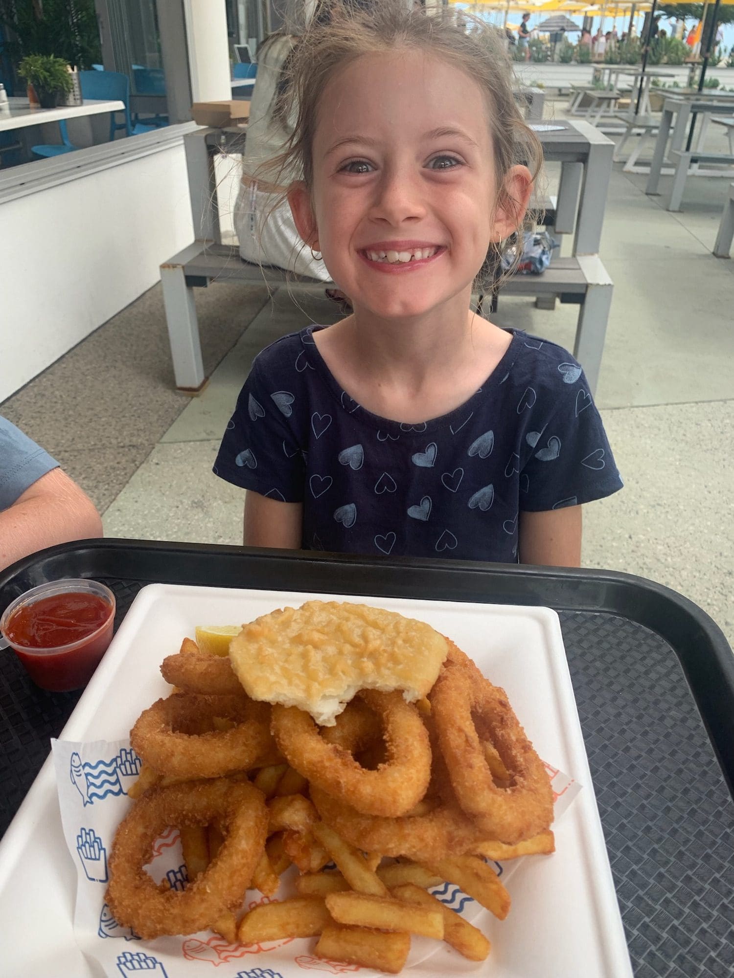 The next day we went to Fremantle market. It wasn’t like the markets I was use to because it was an indoor market. I loved the market. When we were entering it I saw pants with little mirrors on them. We bought some billtong and jerky, some dragon fruit but I didn’t like it and a yummy donut. Next we went to visit the Round House. It was a round building that they sometimes kept prisoners. Then we went to Twin Fin to have fish and chips for lunch. I had calamari rings and chips and one potato cake. I really loved Fremantle and I think I could live there.