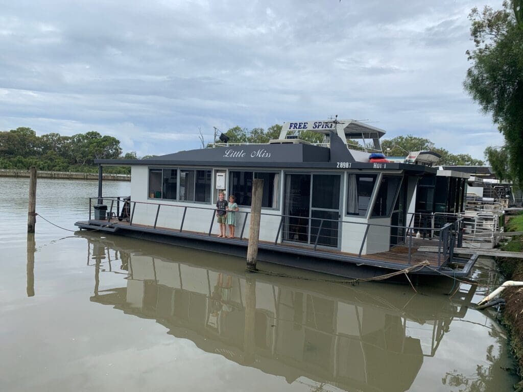 We got up early and packed up the camp trailer because we were trying to beat the rain. For breakfast we went to a cafe and I had scrambled eggs on toast. When we got to Murray Bridge Caravan Park and Marina Isaac and I got a big surprise. Mum and Dad had booked a floating cabin. It was amazing! Isaac and I had a room with a bunk bed. It was only a small floating cabin called Little Miss, but it was perfect for the time we were there. For the rest of the day it was raining so we stayed inside. When it stopped raining we went out onto the balcony and fished. We only caught carp but it was still fun. The next day on Little Miss it was raining but we still went fishing. We still caught lots of carp off the balcony.